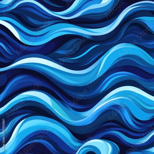 Fototapeta premium Abstract Flowing Waves Pattern in Ocean Blues with Dynamic Movement and...