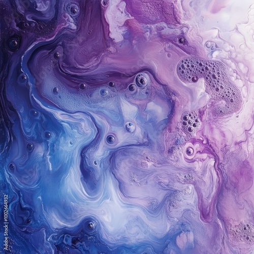 © Pachara, Obraz premium Abstract fluid art featuring beautiful swirls of purple and blue colors, creating a dreamy, ethereal backdrop.