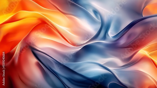 Obraz premium Abstract fluid art featuring dynamic swirling orange and blue waves in...