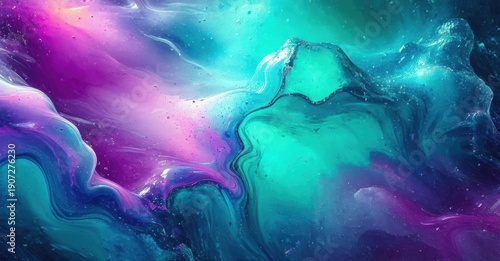 Fototapeta premium Abstract fluid art. Vibrant colors blend, creating cosmic swirls. Texture suggests movement, depth, luminosity. Beautiful, dreamy composition.