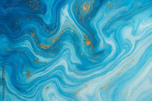 Fototapeta premium Abstract Fluid Art with Blue and Gold Swirls