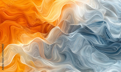 Obraz premium Abstract Fluid Art with Orange and Blue Waves Creating Movement