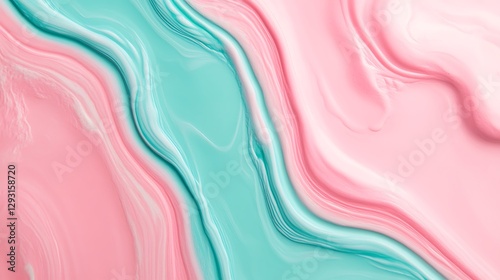 Fototapeta premium Abstract fluid art with swirling textures in soft pink and turquoise hues...