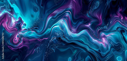 © Mehboob, Obraz premium Abstract fluid art with swirling vibrant colors, dynamic liquid movement, and iridescent waves.