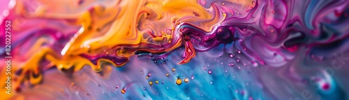 © Rattanathip, Naklejka premium Abstract fluid art with vibrant colors blending seamlessly, featuring orange, pink, purple, and blue hues, creating a mesmerizing visual effect.