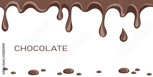 © Logvin art, Fototapeta premium Abstract fluid chocolate background. Melted chocolate spots on white background. Liquid chocolate on a white background. Hand drawn vector illustration.