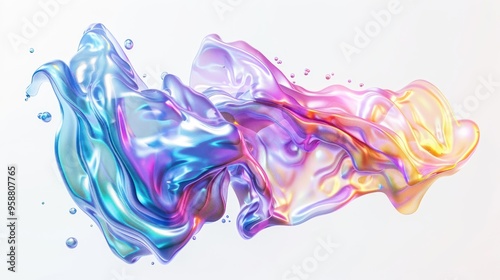 © innova, Naklejka premium Abstract fluid 3D render holographic iridescent neon curved wave in motion white background. Gradient design element for banners, backgrounds, wallpapers, and covers