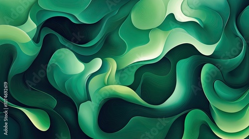 Obraz premium Abstract fluid green waves with layered texture and dynamic flowing patterns