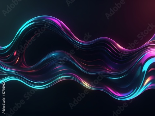© MR.DEEN, Obraz premium Abstract fluid holographic iridescent neon curved wave in motion dark background