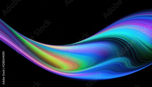 © Marko, Naklejka premium Abstract fluid iridescent holographic curved wave in motion colorful gradient design on black background