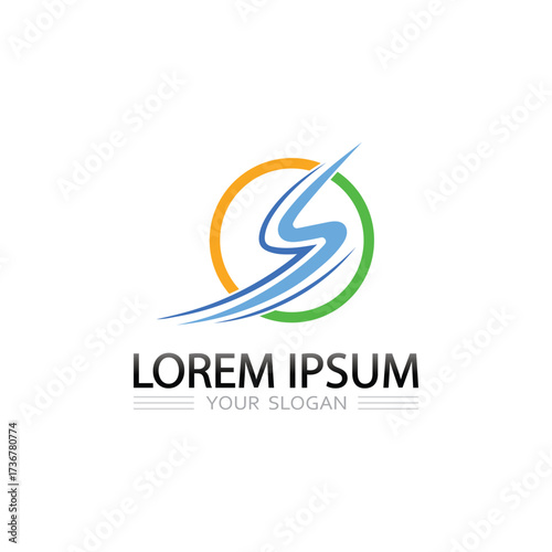 © angga, Fototapeta premium Abstract fluid motion water wave blue vector logo design for creative company