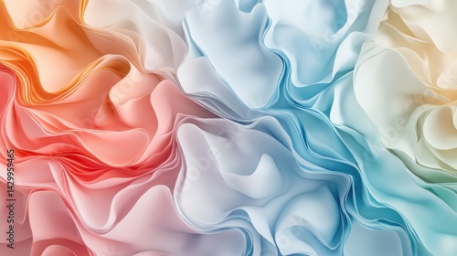 © Zarana , Fototapeta premium Abstract fluid pastel waves on melted plastic texture wrinkled silicone sheet background.