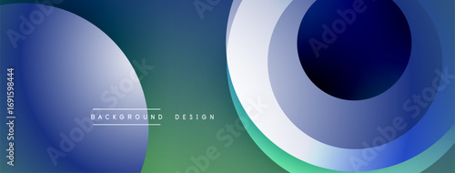 Fototapeta premium Abstract fluid shapes, blue, green hues. Overlapping circles create dynamic...