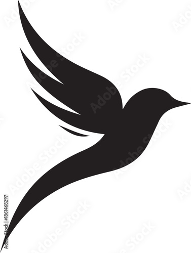 Obraz premium Abstract flying bird silhouette smooth wing black vector design