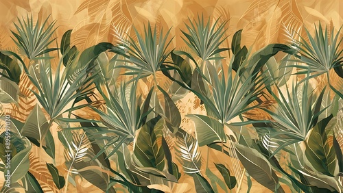 Fototapeta premium Abstract foliage botanical background. beige wallpaper of tropical plants,...