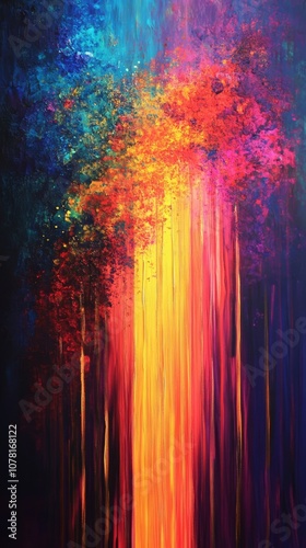 Fototapeta premium Abstract forest with vibrant colors in vertical