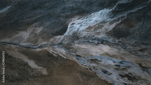 © razvanli, Fototapeta premium Abstract forms of ice on land from Drone