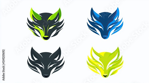 Fototapeta premium Abstract fox head logo designs, colorful, diverse, four variations