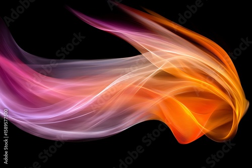 © Puji, Obraz premium Abstract fractal art design with flowing lines of pink, orange, and yellow on black