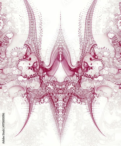 © AURA COLLECTIONS, Obraz premium Abstract fractal art in shades of pink and white on a white background.