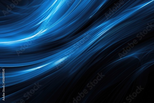 © Vlad, Fototapeta premium Abstract Fractal Blue Horizontal Lines - A Bright Aglow Pattern on Black Background