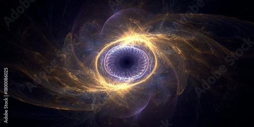 Naklejka premium Abstract fractal energy swirl, glowing core, electric motion, cosmic atmosphere