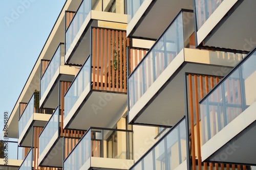 Fototapeta premium Abstract fragment of contemporary architecture, walls made of glass and...