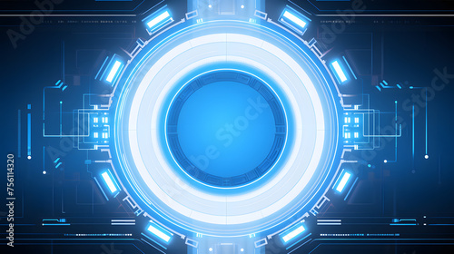© Raffaza, Fototapeta premium Abstract futuristic background with digital blue elements and tech circles
