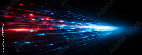 © Inga Av, Naklejka premium Abstract futuristic background with glowing lines and a digital data stream.