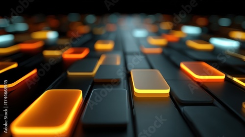 © aun, Obraz premium Abstract Futuristic Background with Glowing Rectangles and Blocks