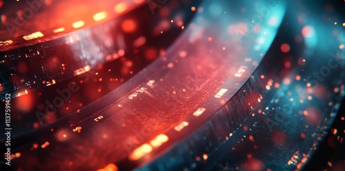 © Salman, Obraz premium Abstract futuristic background with glowing red and blue lights and particles.