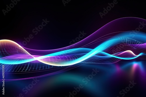 Naklejka premium abstract futuristic background with gold PINK blue glowing neon moving high...