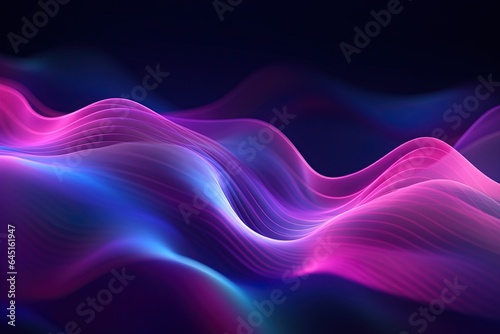 © ChickyKai, Obraz premium abstract futuristic background with pink blue glowing neon moving high speed wave lines and bokeh lights. Data transfer concept Fantastic wallpaper