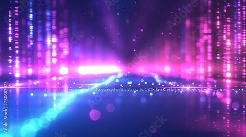 Fototapeta premium Abstract futuristic background with purple and blue glowing neon moving high speed wave lines and bokeh lights. Visualization of sound waves. Data transfer. Fantastic wallpaper gen by AI