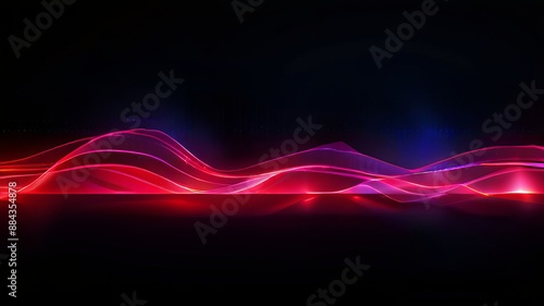 © Nicholas, Naklejka premium Abstract futuristic background with red blue glowing neon moving high speed wave lines and bokeh lights. Data transfer concept Fantastic wallpaper. Generative AI