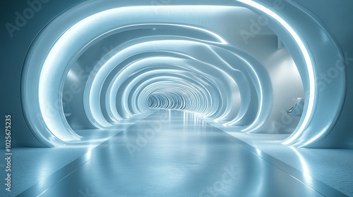 Obraz premium Abstract futuristic blue tunnel with a glowing light at the end, creating a...