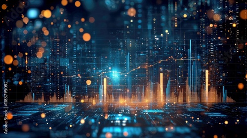 Fototapeta premium Abstract Futuristic Business Finance Growth Chart: Data Analytics, Market, Investment, and Technology