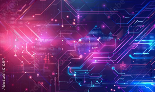 © Dario Berardi, Obraz premium Abstract futuristic circuit board. High computer technology orange, violet and blue color background. Hi-tech digital technology concept. cyber security.