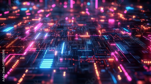 Fototapeta premium Abstract Futuristic Circuit Board with Neon Lights