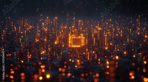 Obraz premium Abstract futuristic city glowing with orange light.