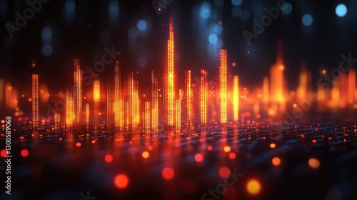 Fototapeta premium Abstract futuristic city skyline, vibrant orange glow, digital art, background