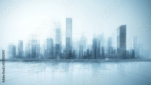Fototapeta premium Abstract futuristic cityscape design with ethereal blue tones reflecting below