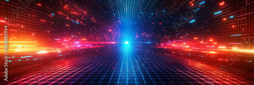 Obraz premium Abstract Futuristic Cyberpunk Banner Background With Neon Lights.
