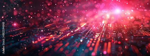 Obraz premium Abstract Futuristic Digital Circuit Board with Glowing Red and Pink Lights