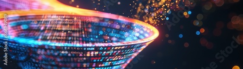 Obraz premium Abstract futuristic digital data visualization with glowing particles,...