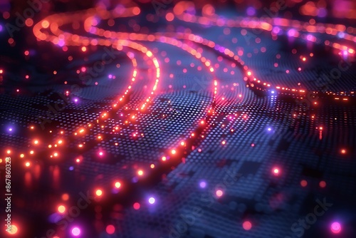 © Liza, Obraz premium Abstract futuristic dot interface with glowing dots and lines