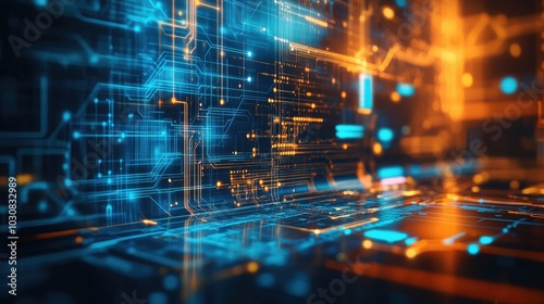 © hanisah, Obraz premium Abstract futuristic electronic circuit technology background
