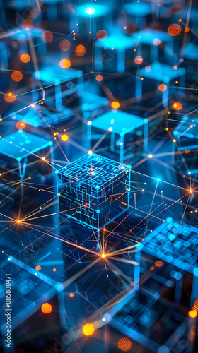 © ma, Obraz premium Abstract futuristic glowing cubes