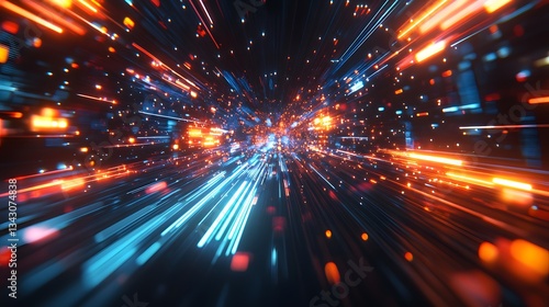 Fototapeta premium Abstract futuristic graphic displays fast moving colored light trails
