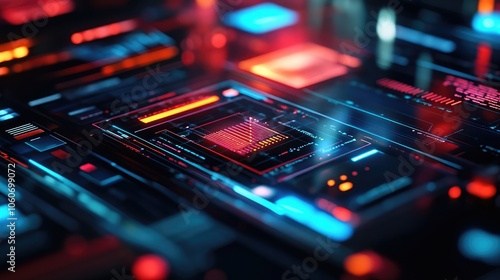© Ayan, Obraz premium Abstract futuristic interface with glowing lines and digital data.